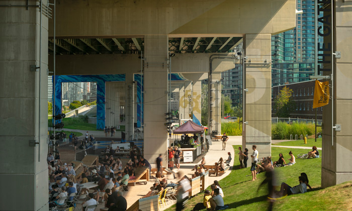 The Bentway is a stunning outdoor space located below the elevated Gardiner Expressway in downtown Toronto. It has become known as both a beloved backyard park and one of the city’s top creative destinations, often hosting art installations, cultural performances and community celebrations.